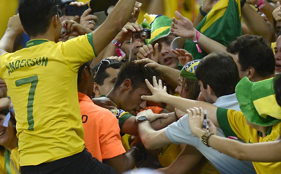 A seleção brasileira se emocionou com o apoio da torcida na vitória por 2 a 0 sobre o México, nesta quarta-feira, no estádio Castelão, em Fortaleza. O momento mais marcante foi durante o hino nacional, em que a torcida cantou junto até mesmo após o término da música no sistema de som.